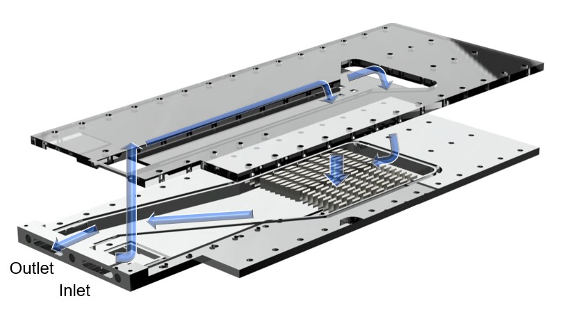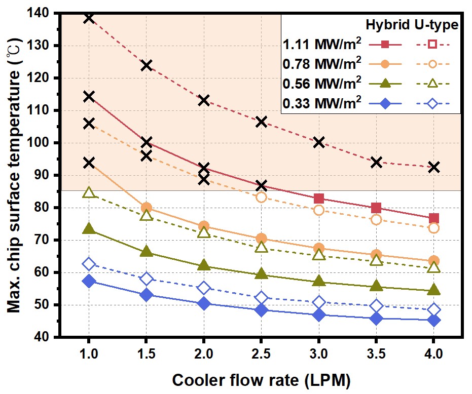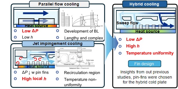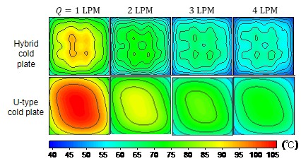 Design concept of hybrid cold plate and numerical results (q″ = 0.72 MW/m²)